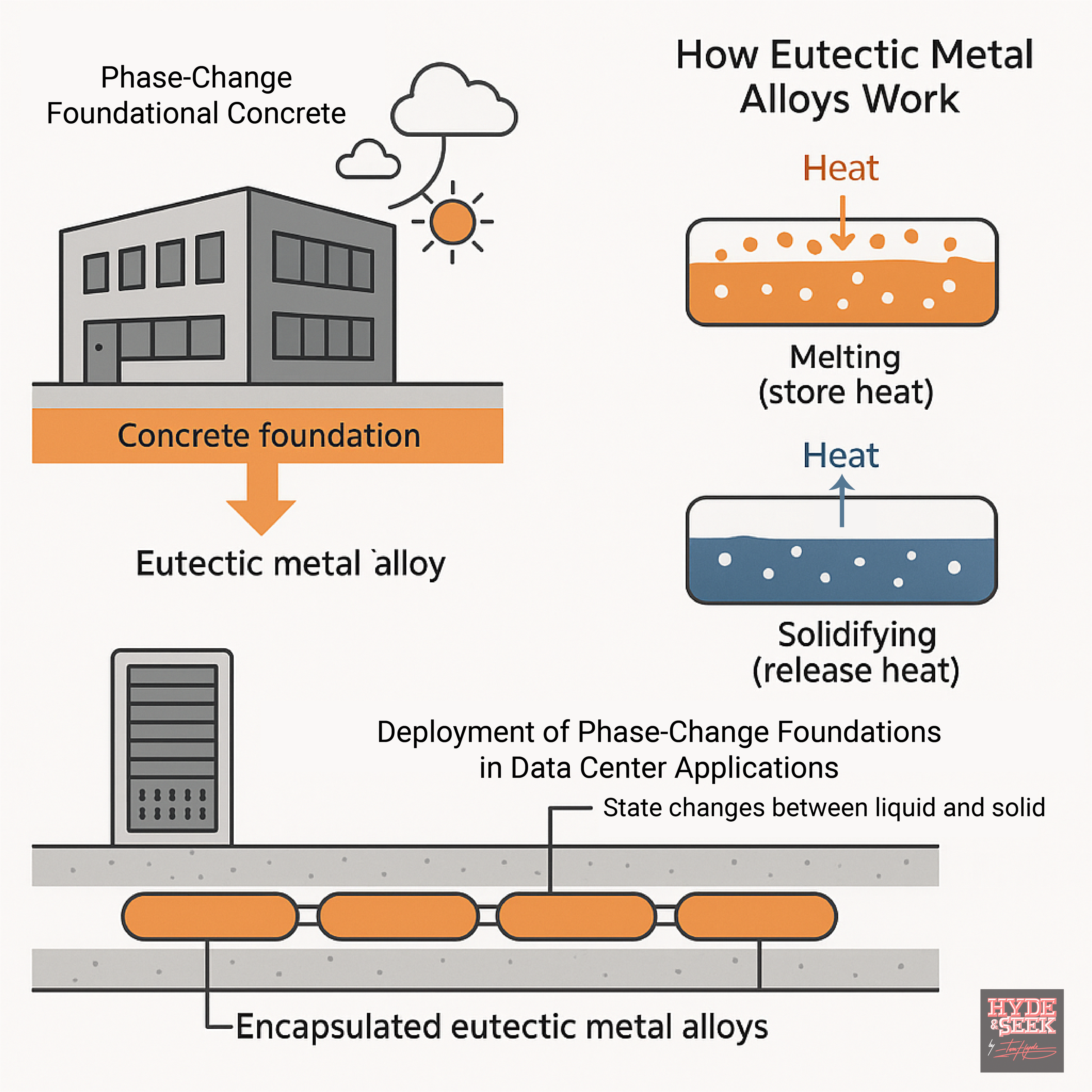 A quick look into integration of phase-change materials into data center foundations to increase operational efficiency of HVAC and mechanical cooling systems to counteract thermal spikes.
